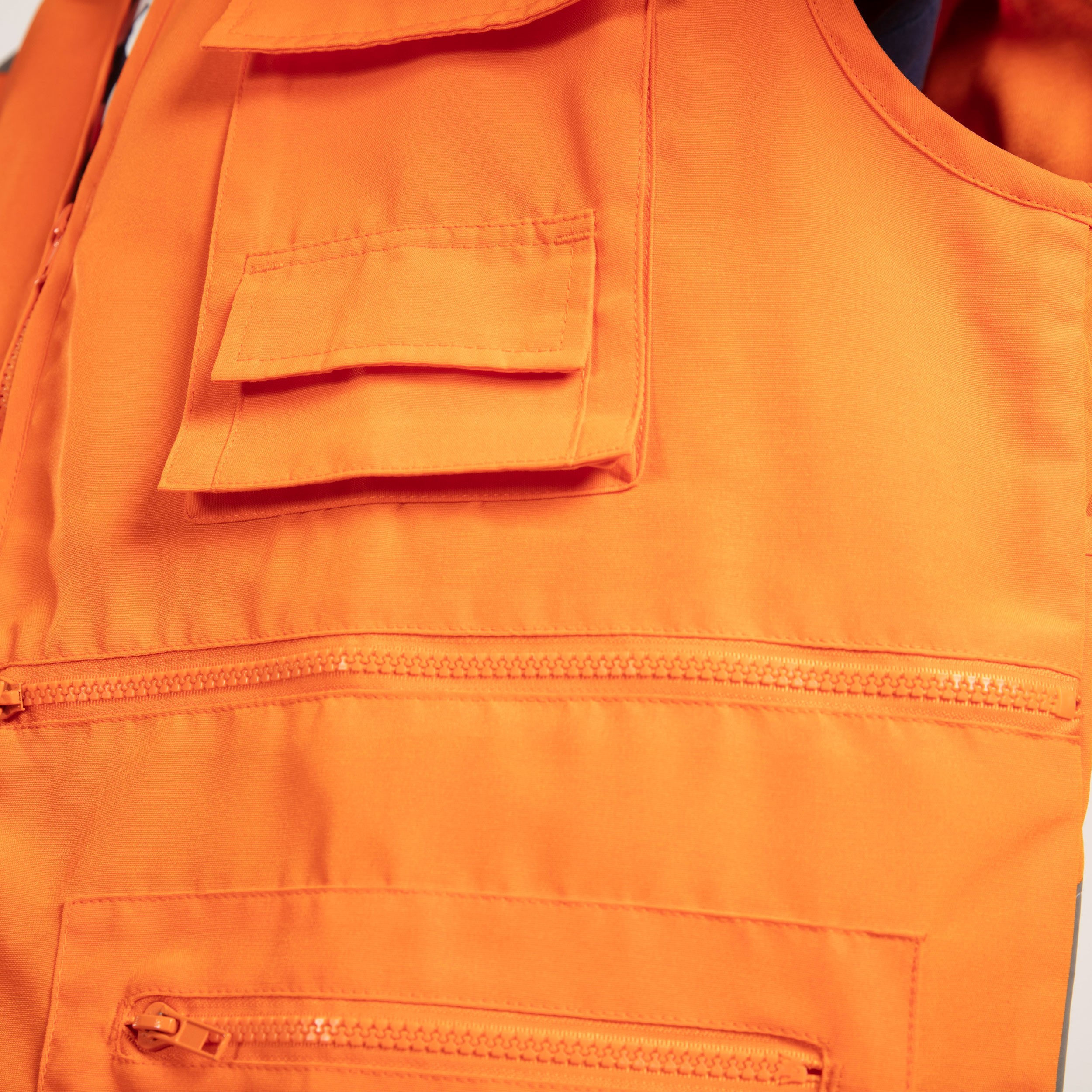 Chaleco Geologo con cinta reflectiva, este producto esta pensado para utilizarlo en faena o terreno, diseñado para el uso de varios implemento y herramientas de trabajo. Posee cinta reflectiva de 5 cm en el delantero y espalda, esto permite una mayor visibilidad nocturna que aumenta la seguridad del trabajador. Cuenta con cierre en el centro delantero a la vista, desmontable, bolsillo mapero en espalda y dos bolsillos de parche con fuelle y cierre. Tiene caderas regulables con pasador plástico.